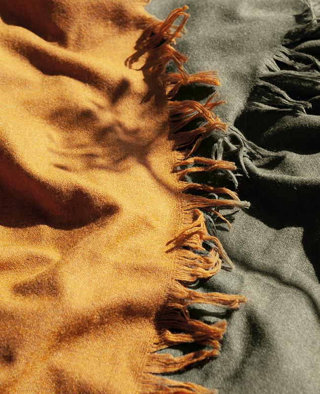 Легкая текстура, теплые цвета и нежная бахрома характеризуют это новое одеяло, изготовленное из сырья высочайшего качества: овечьей шерсти только с отборных и экологически чистых ферм.