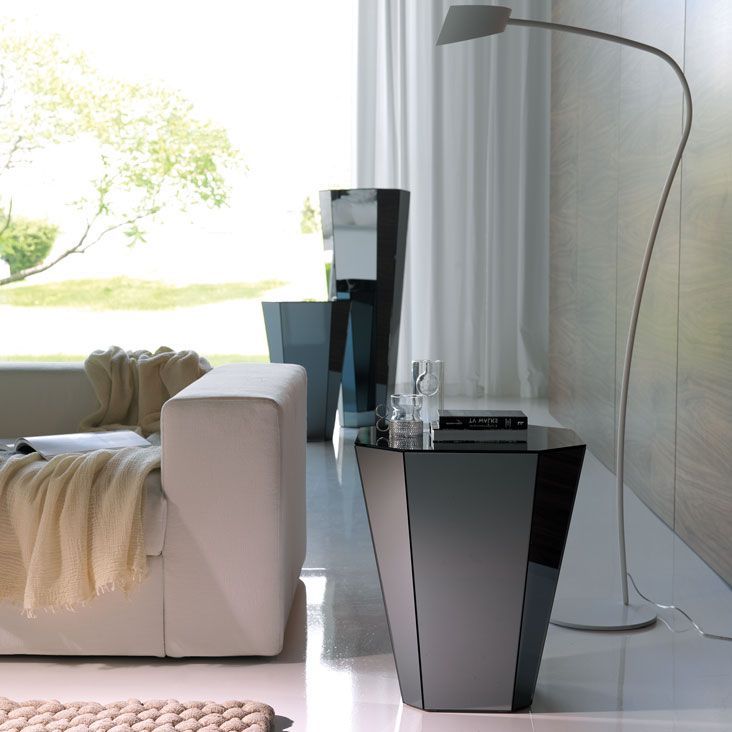 Кофейный столик, полностью покрытый зеркальным стеклом или дымчатым зеркальным стеклом.