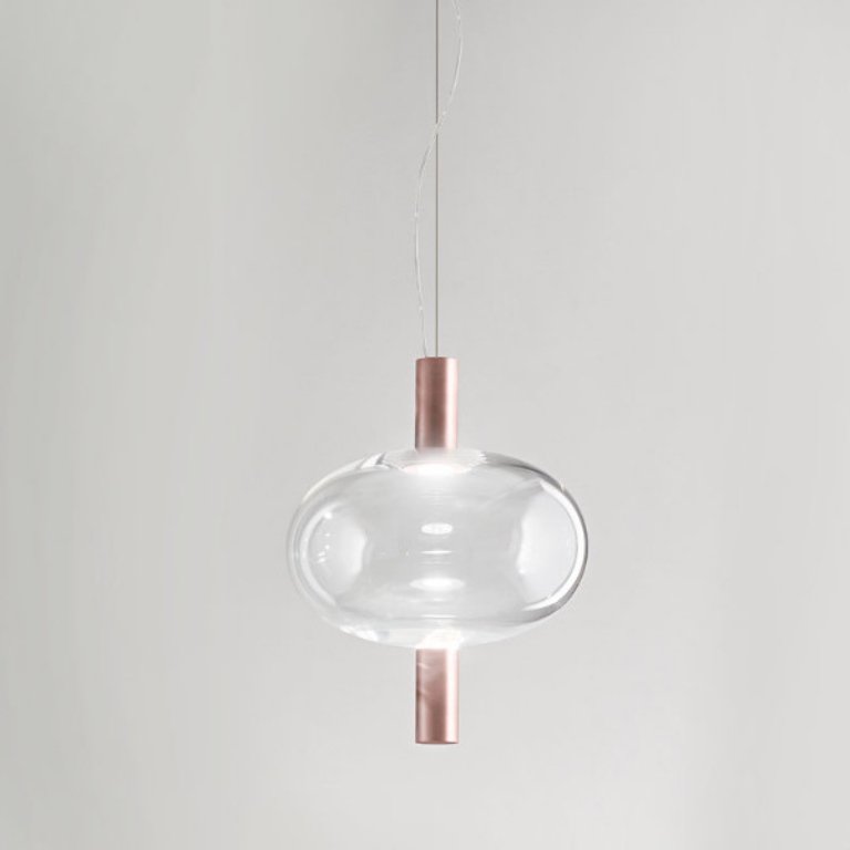 Подвес RIFLESSO итальянского производителя Vistosi имеет форму, похожую на мыльный пузырь из далёких детских воспоминаний. LED-источник света, играючи, преломляется на зеркальной поверхности. Стеклянный плафон является не только рассеивателем, но и почти невидимым посредником между источником света и отражающим элементом. Светильник характеризуется простотой и легкостью.