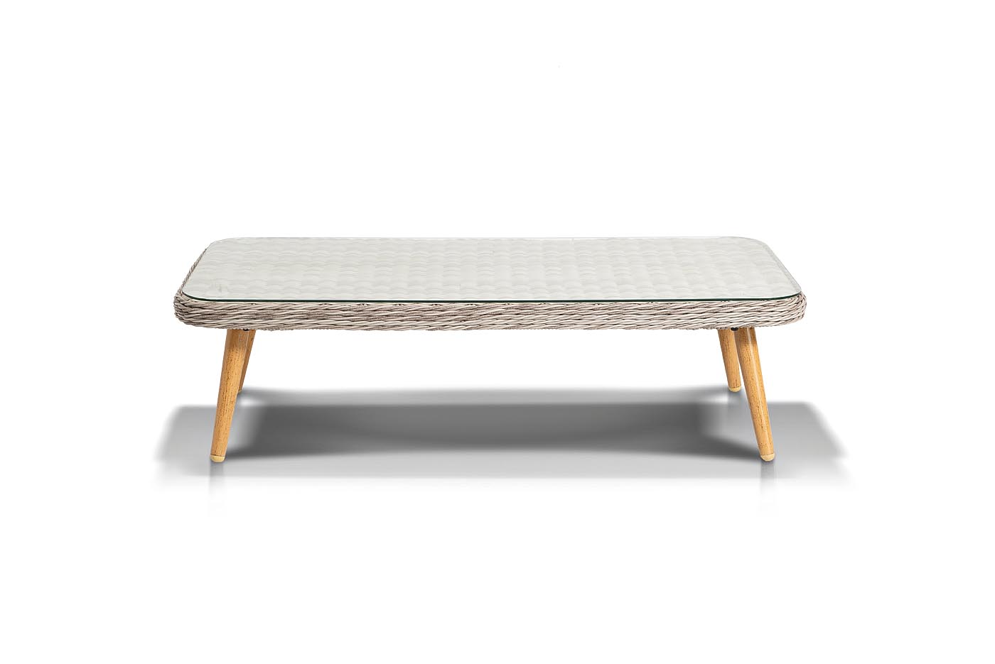 Плетеный столик укомплектован столешницей из закаленного стекла, толщиной – 5 мм.