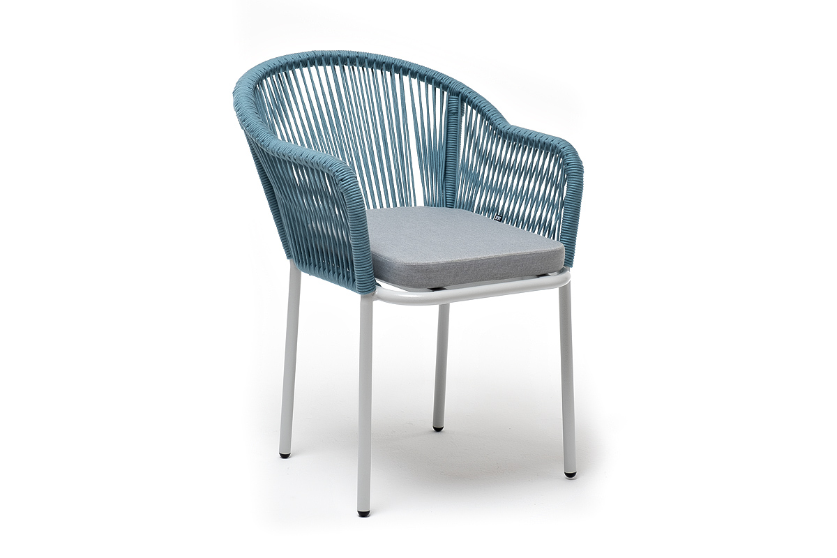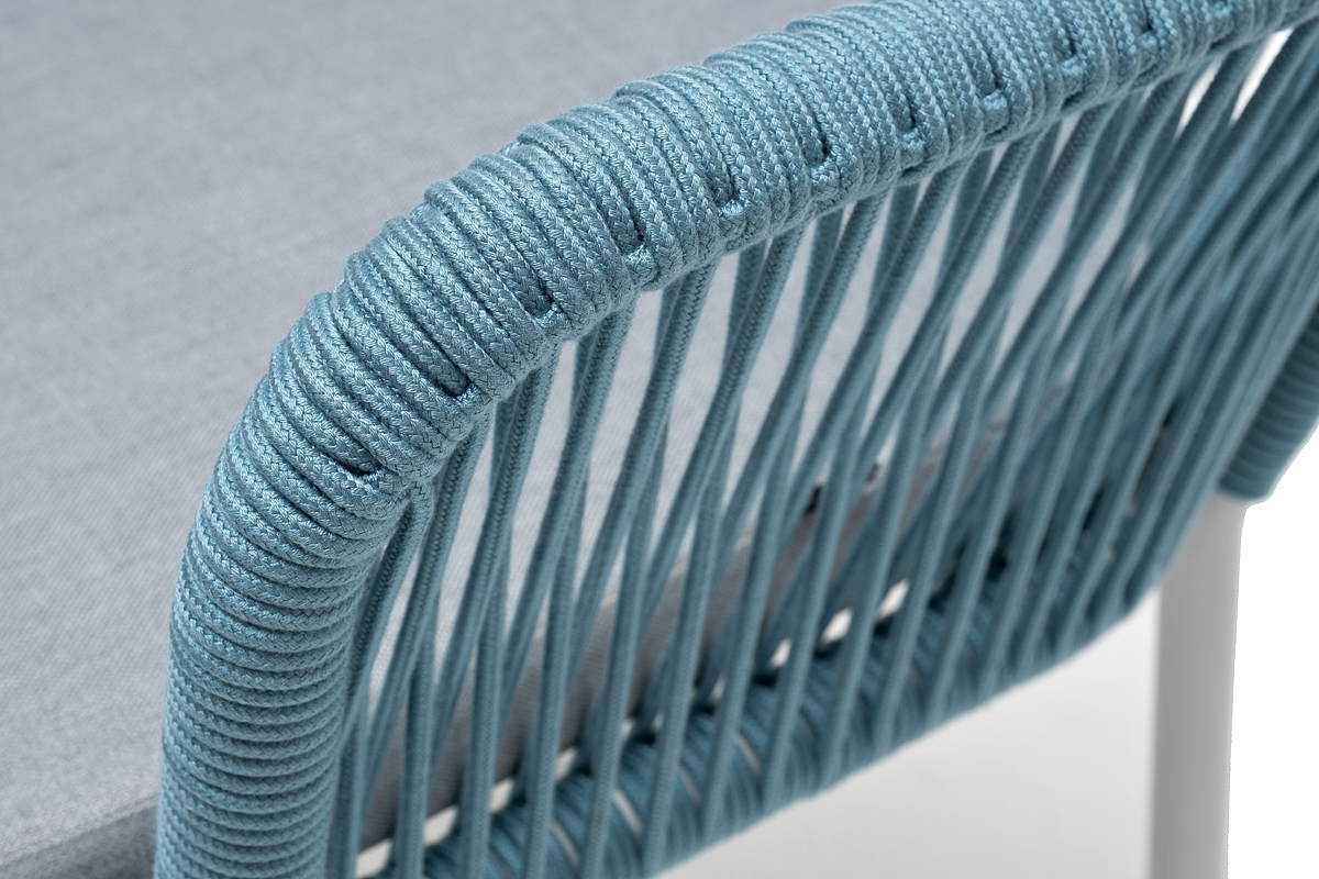 "Лион" стул плетеный из роупа, каркас из стали светло-серый (RAL7035) муар, роуп бирюзовый круглый, ткань светло-серая